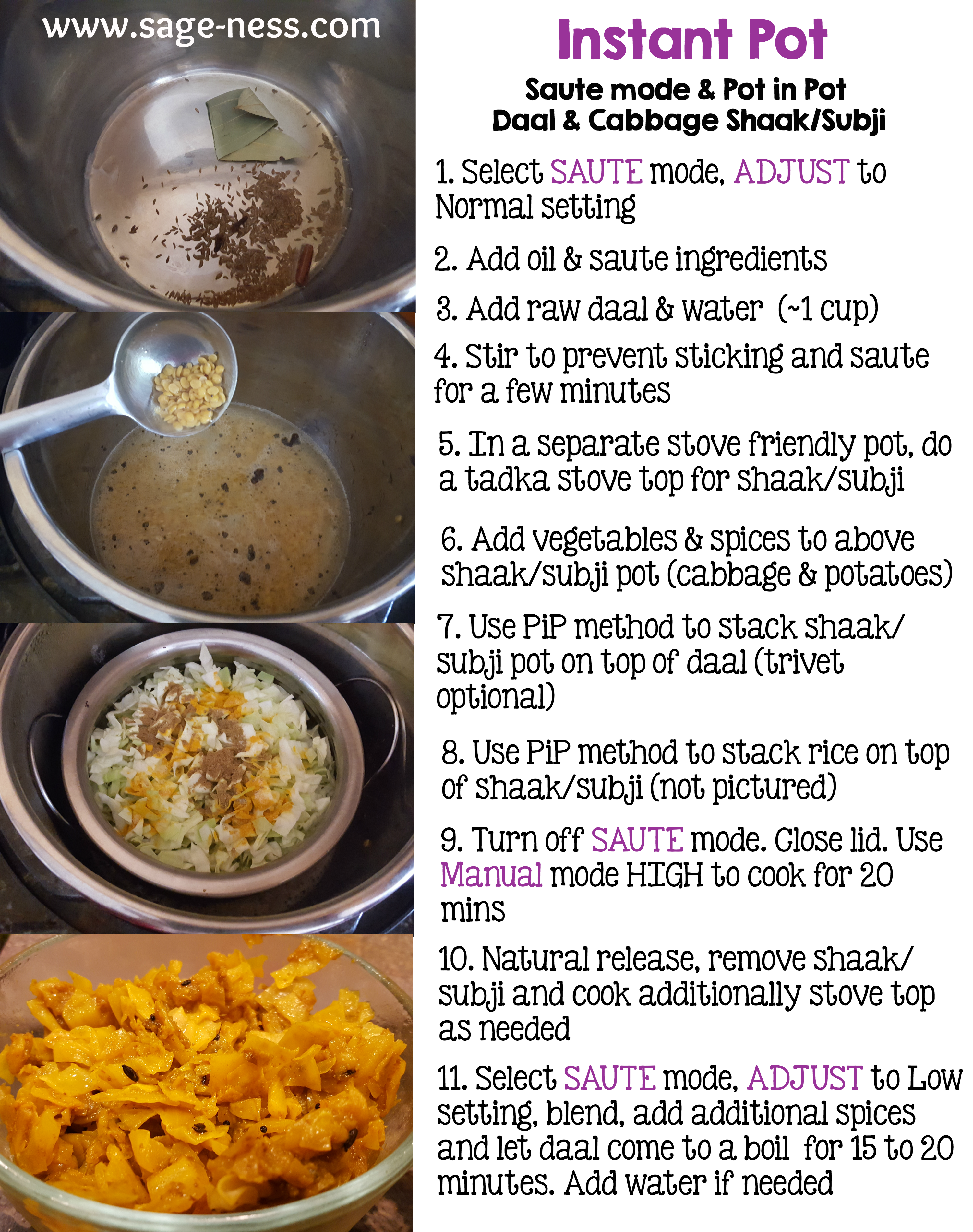 How to use the Instant Pot sauté mode & pot in pot method to make Indian Daal, Shaak/Subji and rice –
