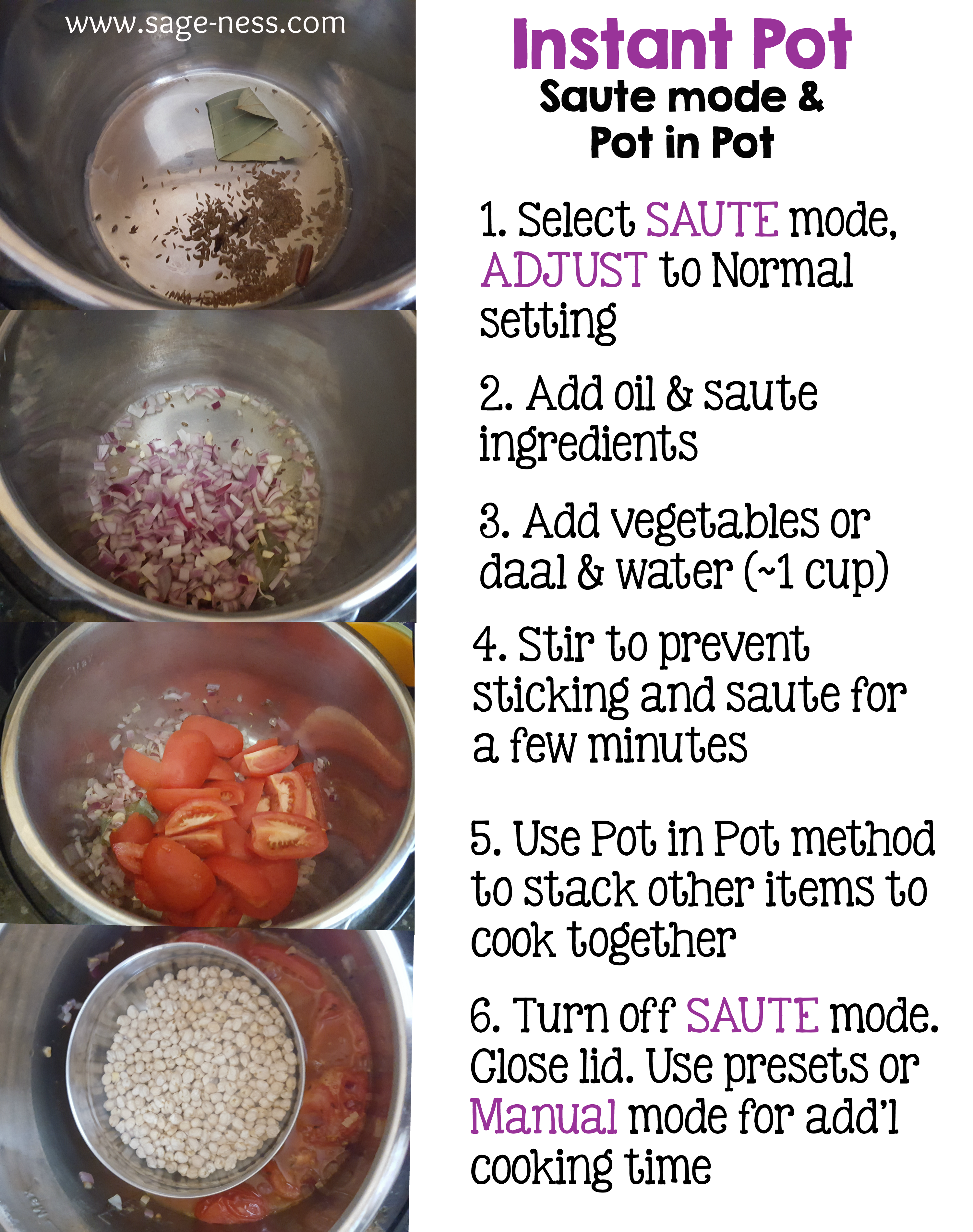 Here is a quick guide to using the sauté mode along with the pot in pot method.